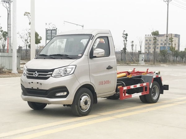 車廂可卸載式垃圾車,又稱勾臂式垃圾車、拉臂式垃圾車。該車廣泛適用與城市街道學校垃圾處理,可一車配備多個斗,各個垃圾點放置多個,帶自卸功能,液壓操作,方便傾倒。在平日里可將車載垃圾箱放置到各個垃圾收集站,待垃圾收集滿后,該車可直接開赴至垃圾站,通過液壓系統的操控,可將垃圾車后座上加裝的勾臂放下,掛住站內垃圾箱前端的連接點,將垃圾箱拉至車體的后座上,此時即可啟動車輛,將垃圾運送至垃圾處理站內,進行自卸式傾倒。該車主要的優點就是可一車配多斗,一輛車就可以維持數個垃圾收集站的運轉,效率高,且箱體為密封式設計,不會造成二次污染。